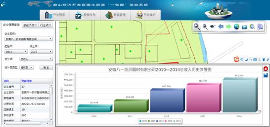(2)开发区“一张图”综合办公服务系统。基于开发区“一张图”后台数据库,面向不同用户应用,定制各种业务管理模式,建立空间数据和业务数据一体存储应用系统,设计国土资源管理、企业经济管理、文档资料管理、数据查询、统计分析和专题应用模块来构建的统一应用平台,为开发区土地集约利用、土地利用监管、企业管理等业务提供服务。这样既可以实现无纸化办公,也可以使开发区各部门以及上下级之间沟通,信息共享。同时,也丰富了开发区办公和业务管理形式,构建了一个丰富而实用的应用平台。