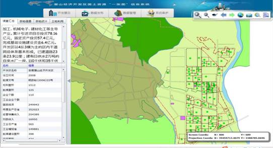 项目以经济开发区基础地理空间数据和相关业务属性数据为研究对象,利用先进的地理信息技术、空间数据库技术和管理信息技术,建立开发区“一张图”管理信息系统,以满足开发区“一张图”信息数据的快速处理、发布、统计、更新和安全管理需要,实现基础信息数据在各个部门之间便捷、平滑、高效的数据交换与共享, 达到图形化、可视化、自动化的效果,从而为开发区日常行政办公、企业经济统计分析、土地集约利用评价提供基础数据支撑和业务辅助支持,使开发区各部门相关工作人员能够更加准确、高效、便捷的开展工作。同时系统提供对外公共服务接口,基于Web GIS技术建设开发区电子政府门户网站。