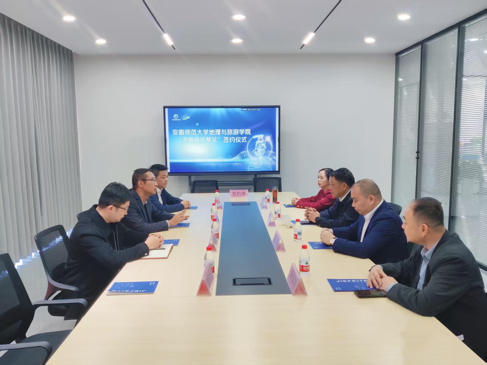 党委书记张顺、党委副书记钱程、旅游管理专业负责人尹寿兵等一行赴安徽杰菲特包装科技有限公司举行“杰明成长基金”签约仪式,并就校企合作促就业进行交流。太湖县副县长李盛华、县委组织部副部长储丽莎,安徽杰菲特包装科技有限公司董事长王结明等出席会议。