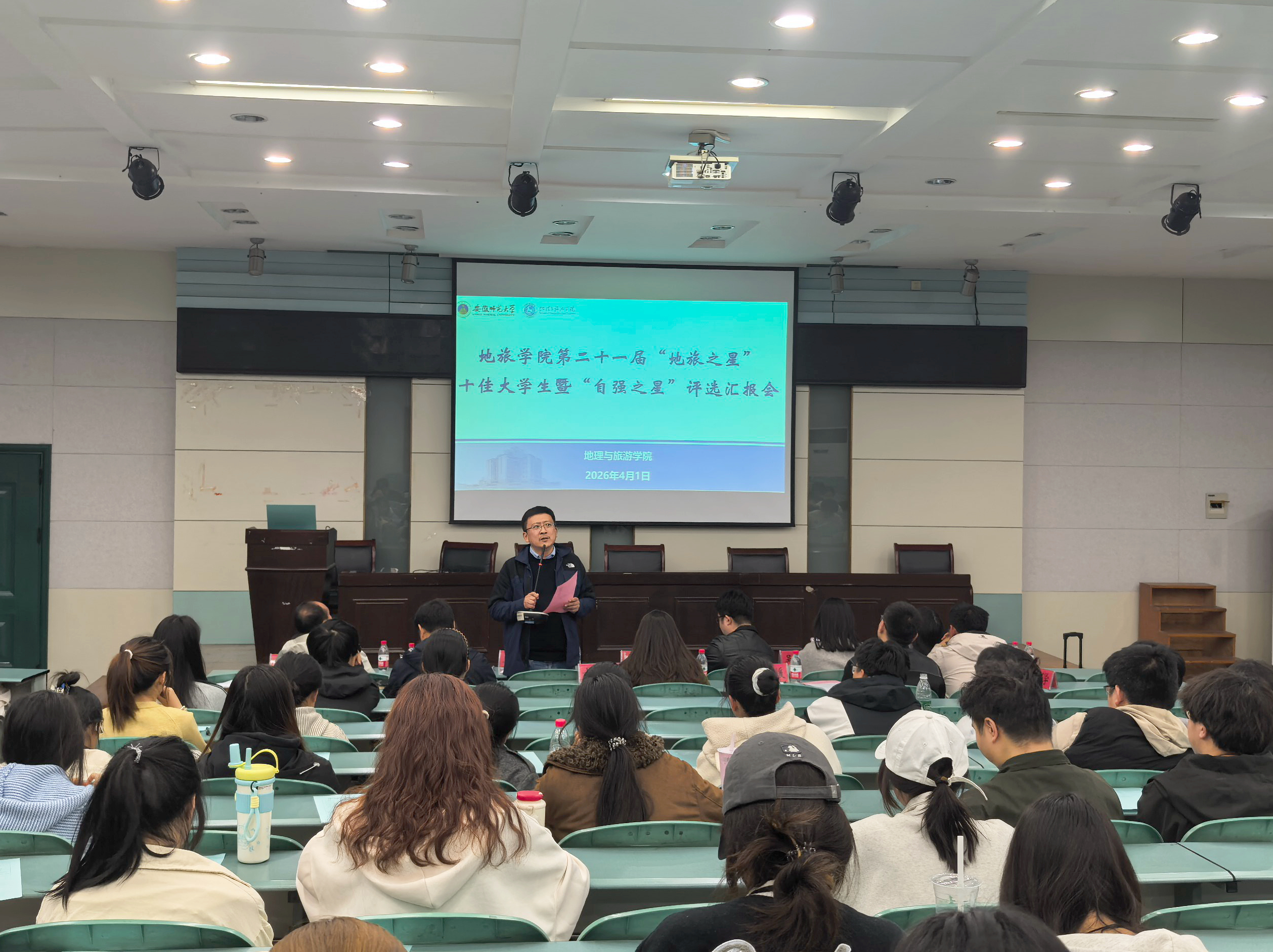 党委副书记、纪委书记钱程在讲话中表示,“地旅之星”评选已连续举办二十一届,既是对优秀学子的表彰,更是全院同学的成长标杆,往届获奖学子如今已在科研、公职、企业等各领域成为骨干,他寄语本届参评学生传承优良学风,砥砺奋进、勇攀高峰。