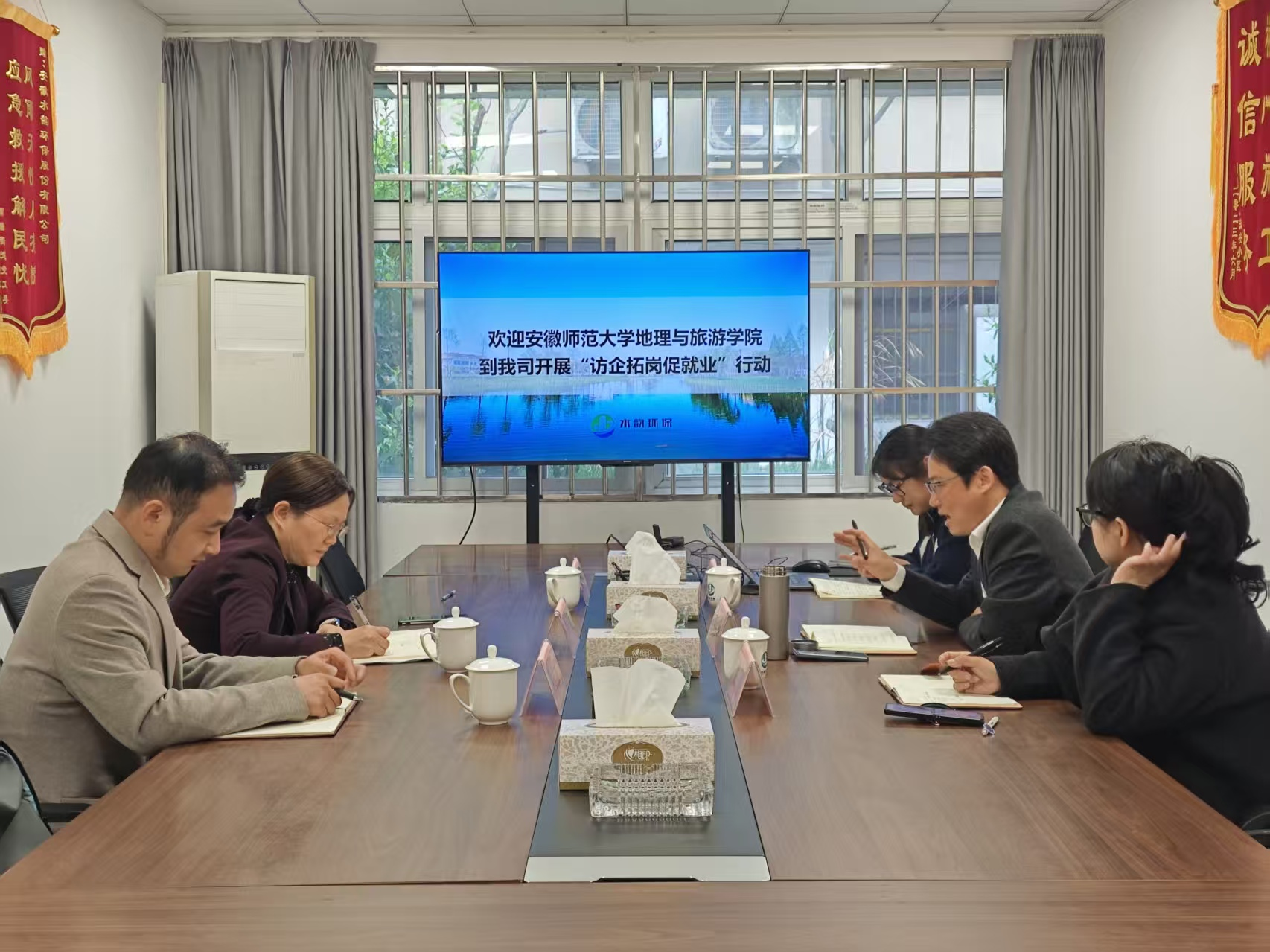 4月3日,地理信息科学专业主动对接安徽水韵环保股份有限公司,院长方凤满、地信专业负责人宋立生及毕业班辅导员陈祥云赴其公司调研交流。水韵环保董事长袁红军,人力资源部部长姚贝,技术负责人秦如彬等热情接待方凤满一行。双方就实习实训基地建设、毕业生招聘、课题合作等事项进行了深入交流与探讨。