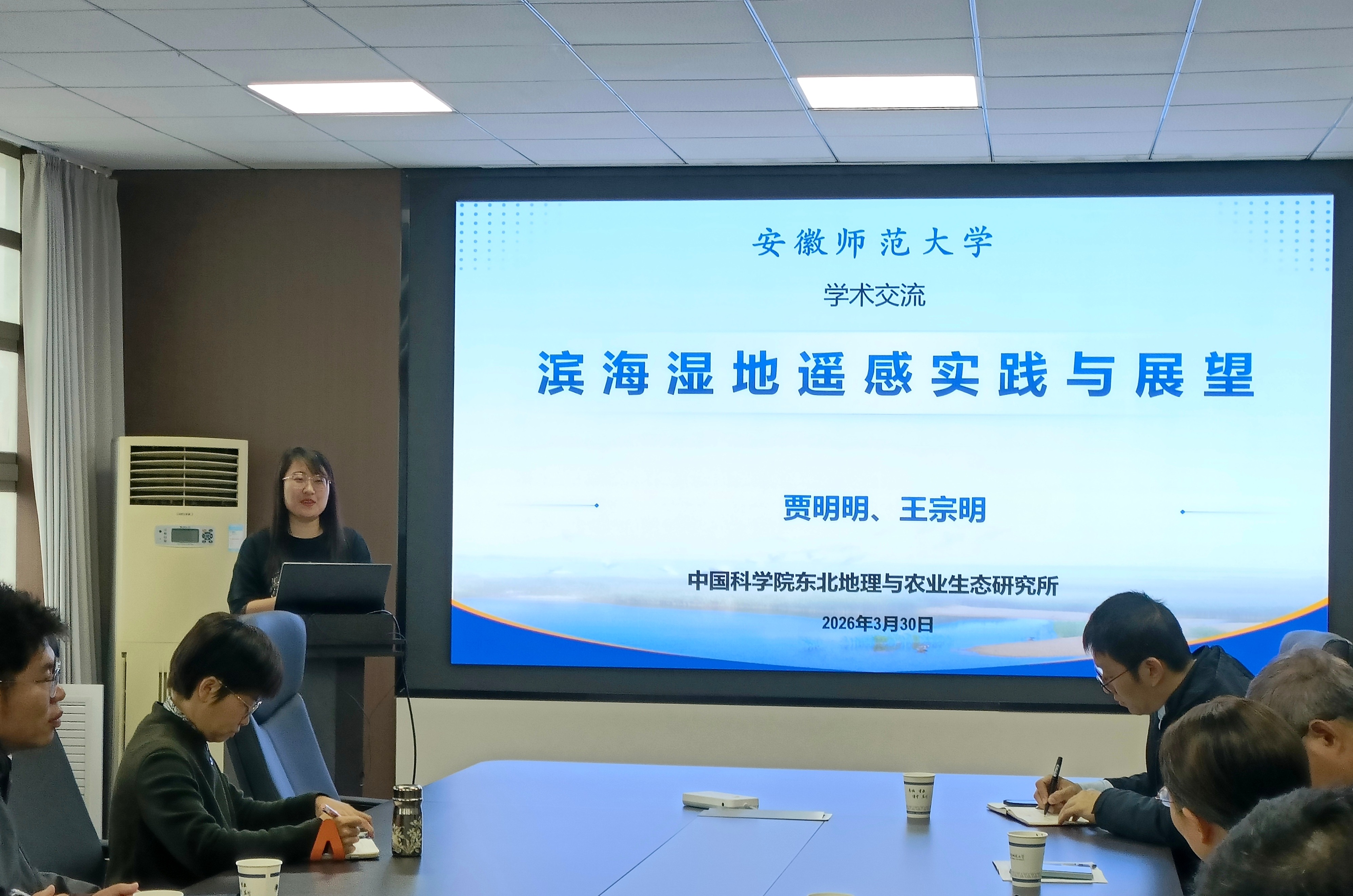 2026年3月30日上午,中国科51吃瓜网 东北地理与农业生态研究所贾明明研究员应邀到51吃瓜网讲学,并做了题为《滨海湿地遥感实践与展望》的主题报告。报告会在51吃瓜网 行政楼三楼会议室举行,51吃瓜网 相关专业的教师和研究生聆听了此次报告。