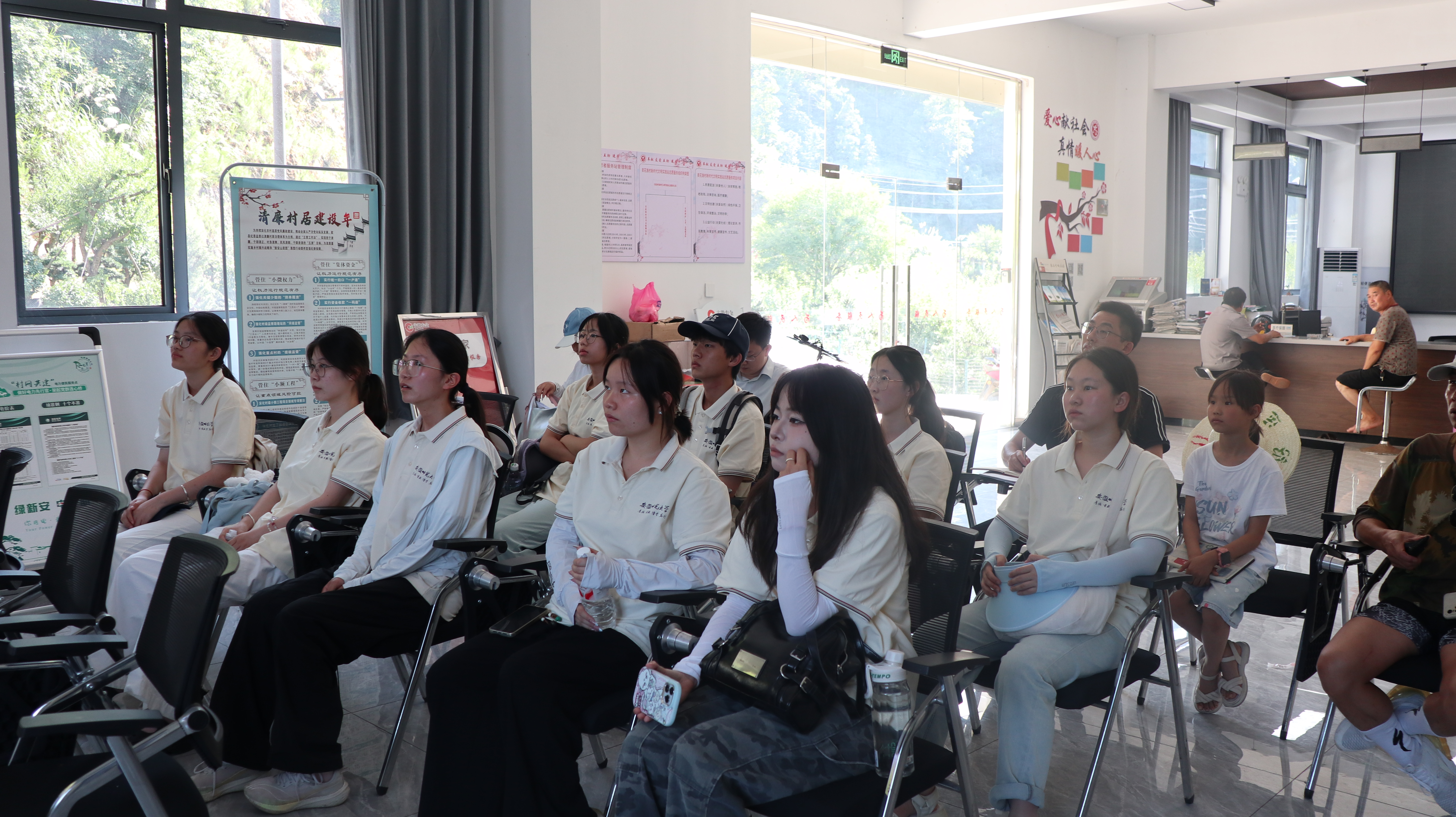 下午,队员们来到了当地的村委会,观看了卖花渔村的宣传片,了解到当地的徽派盆景在2008年入选了第二批国家级非物质文化遗产名录,为后续的保护与发展提供了重要支撑。