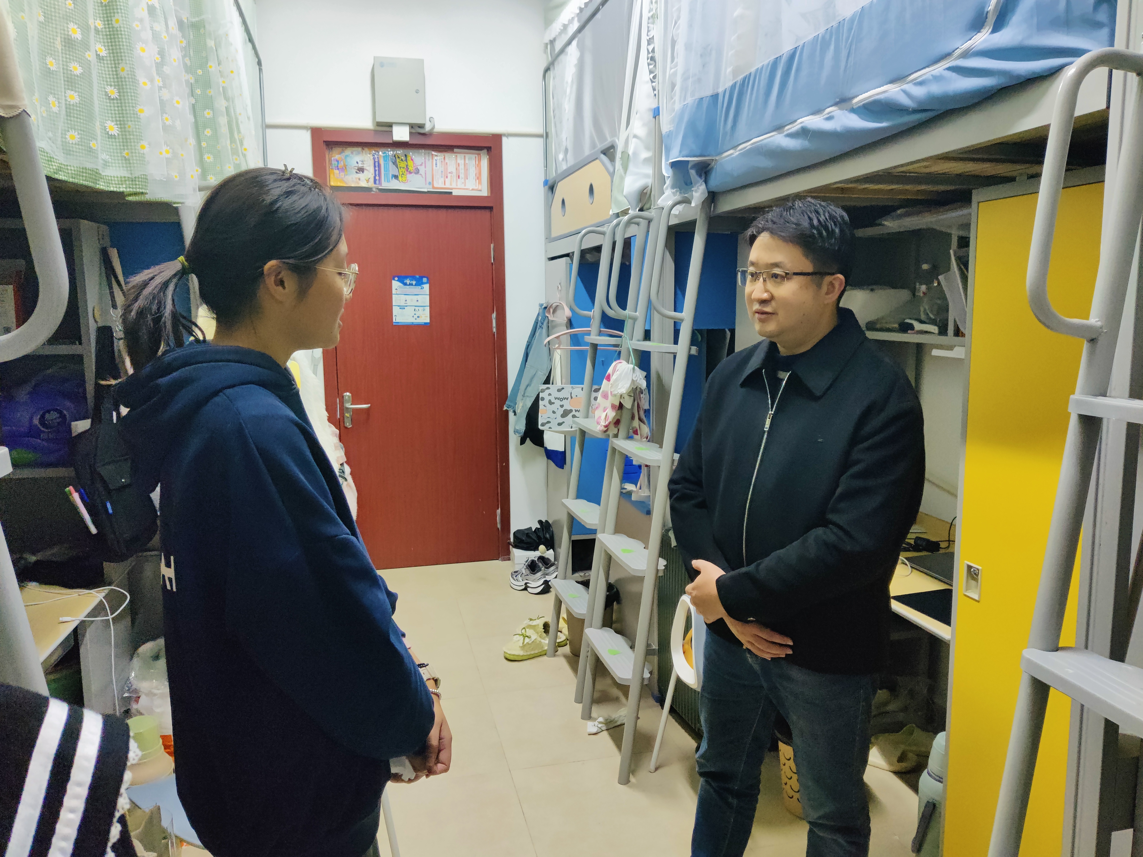 党委副书记钱程和辅导员们深入学生社区,细致关心同学们的日常生活起居、学业进展与未来规划,并针对不同学生的具体情况,进行了个性化的谈心谈话与情绪疏导,将温暖的关怀与专业的指导送到学生身边,打通了心理育人工作的“最后一公里”。
